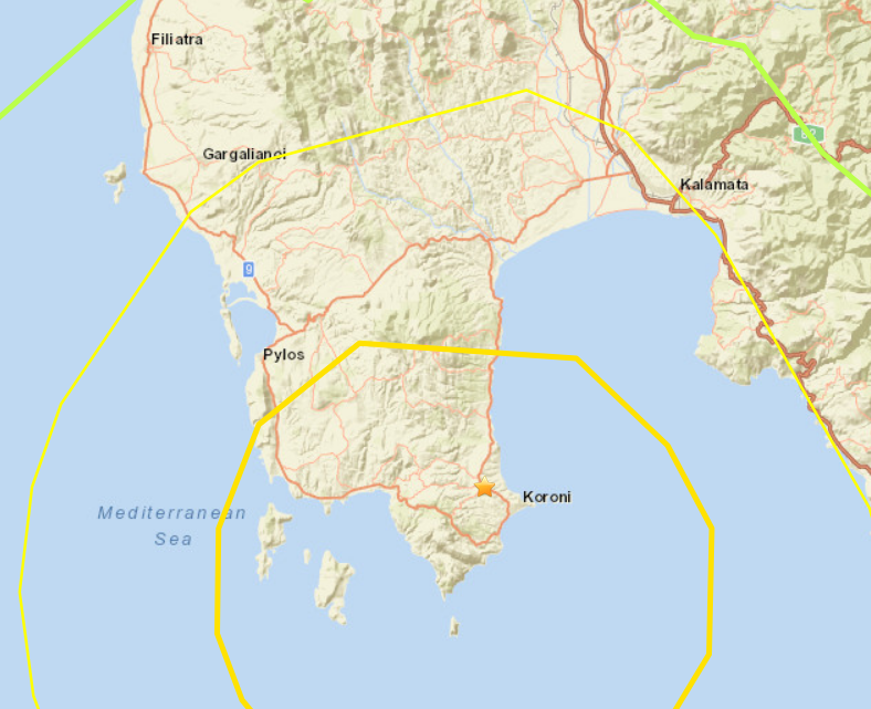 - Earthquake with Magnitude 7.3 ca 4 km WNW from Koroni