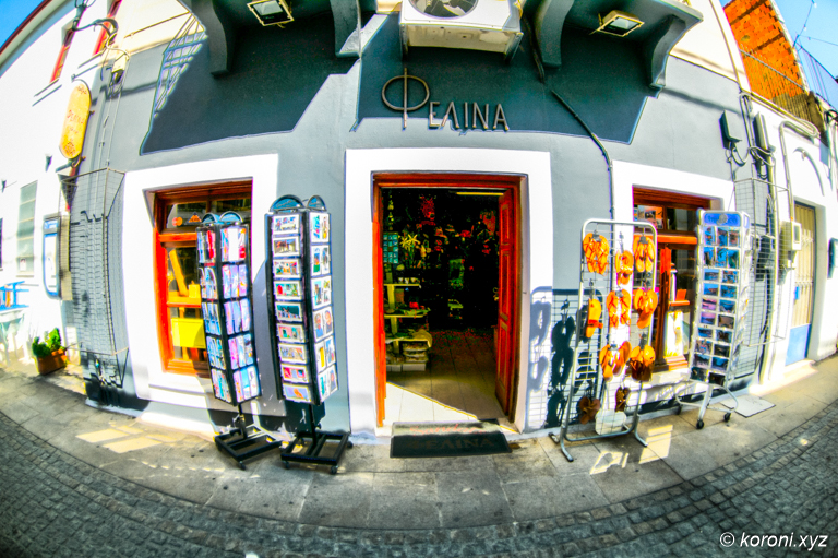 The Felina Shop lies in the road Ralli Perikles, the road parallel to the Marina. It is located in the middle between the center square Agios Dimitrios and Molos Square.